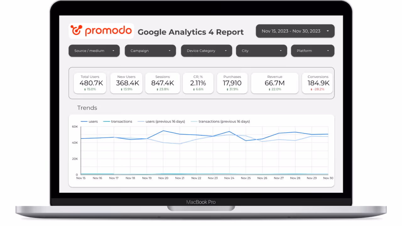 All data from GA4, Google Ads, Meta Ads, and TikTok Ads is in one place, without distortions or limitations. The report makes it easy to compare results across different periods, assess ad ROI, and make decisions based on real data rather than assumptions.