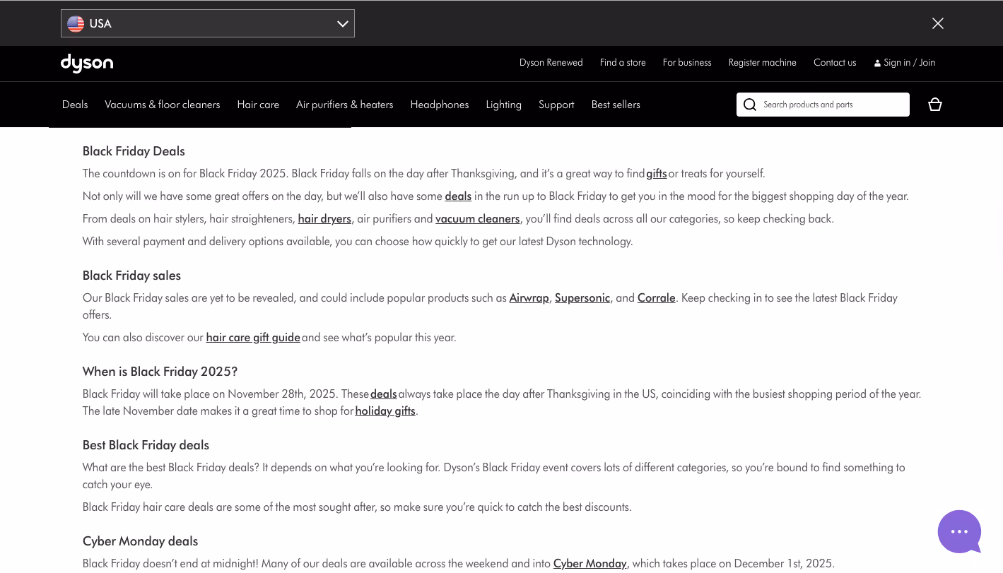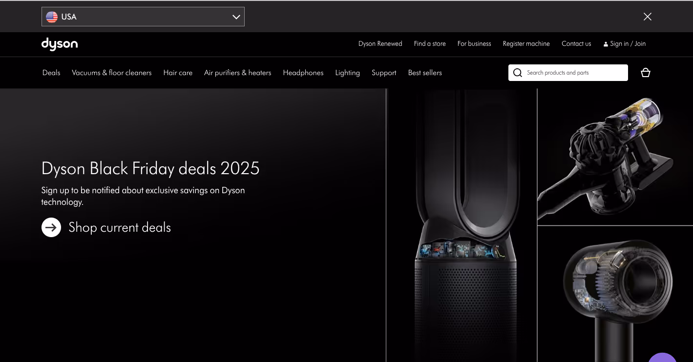 For example, even though Dyson doesn’t display its Black Friday 2025 deals in September, the brand already has a dedicated landing page with a CTA inviting visitors to check the current offers.