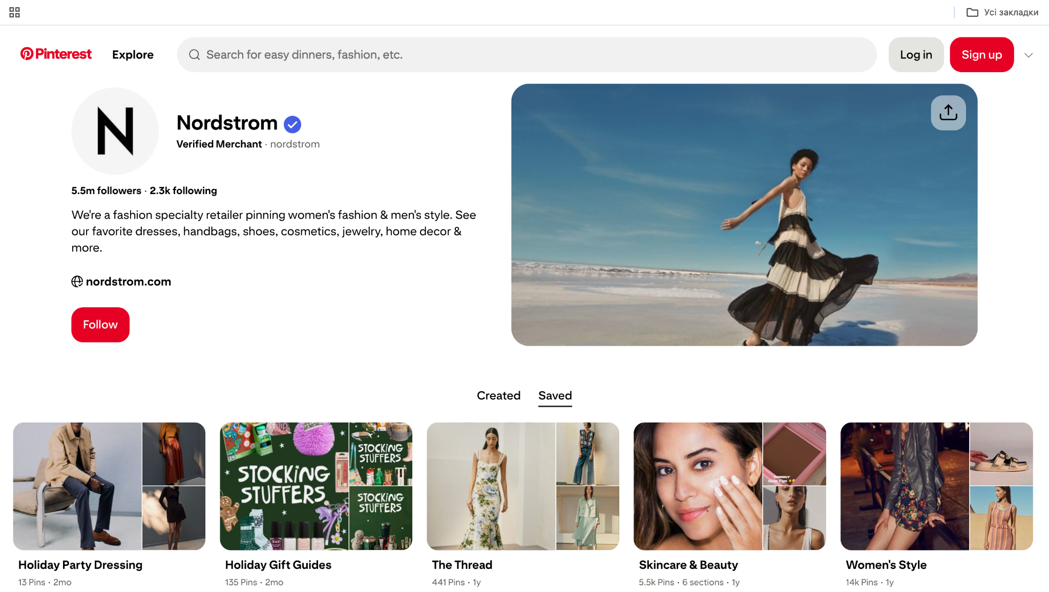 Example: Check out the Pinterest account of the brand Nordstrom to see effective board organization in action.