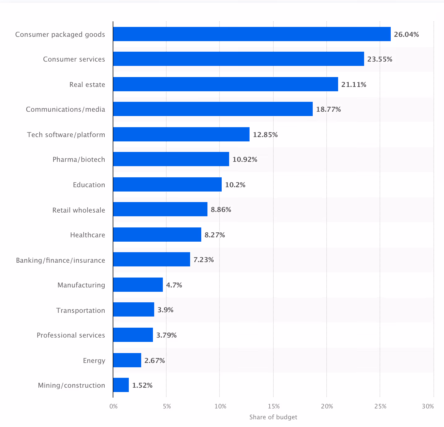Marketing plays a major role in real estate, and it’s getting more expensive. In the United States, chief marketing officers report that 21.11% of total company budgets in real estate now go to marketing. That’s a significant share—and a clear sign of how competitive the market has become.