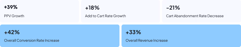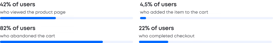 A deep analysis of the early stages of the sales funnel revealed issues with user engagement on catalog pages. The Product Page View Rate averaged only 42%, significantly below the industry standard of 50–55% for this niche. This indicated that users were not receiving enough information or motivation from product listings to continue exploring individual products.