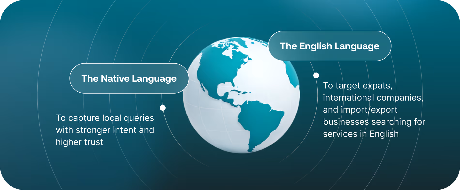 For this matter, we implemented continuous performance analysis across several layers. We regularly evaluated campaigns by geography with additional breakdowns by search language (native vs. English) and search intent (commercial vs. informational). This approach allowed us to better understand how different audiences searched for customs and trade services.