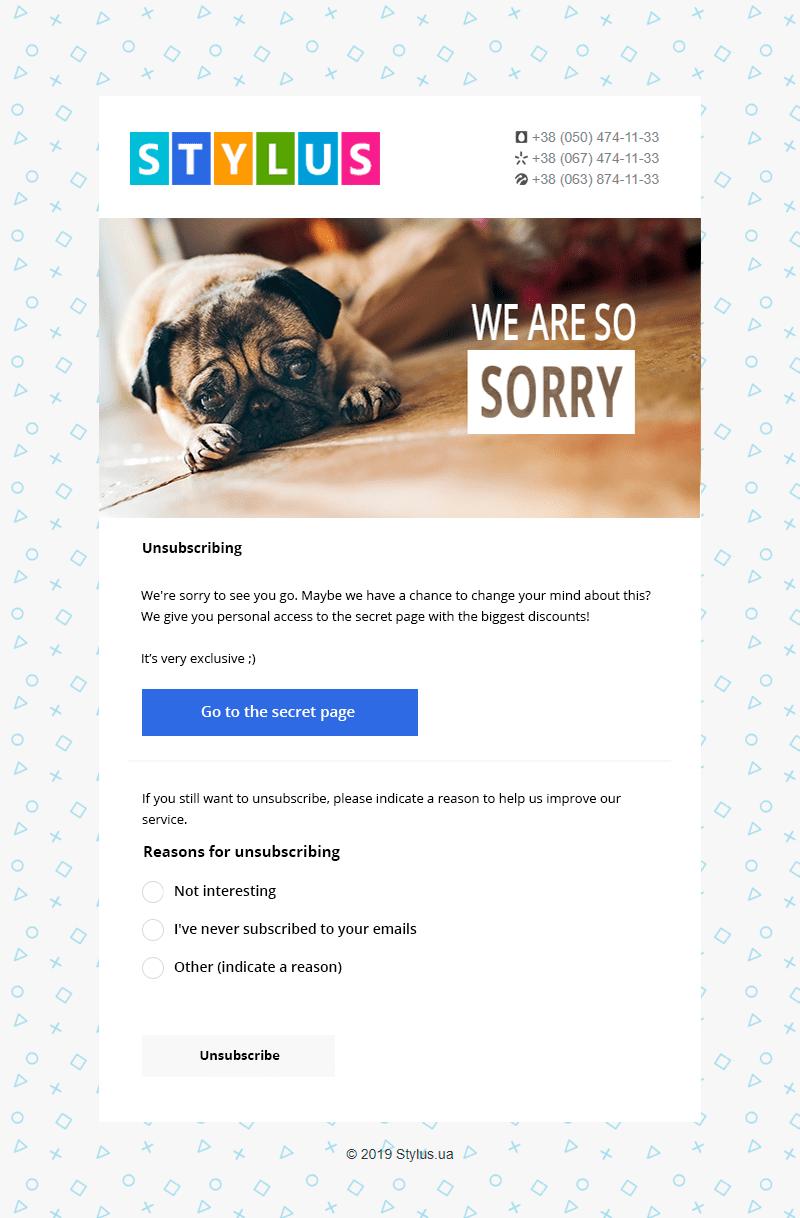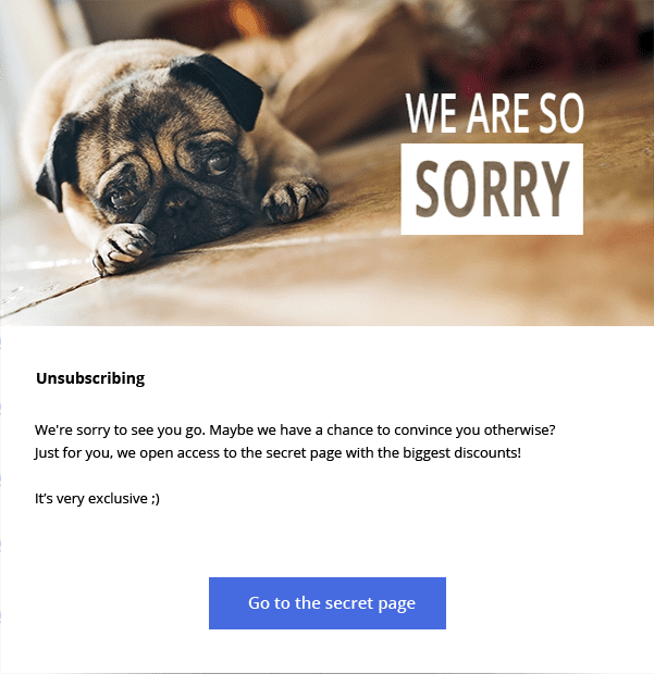 To retain subscribers, we created a form where, instead of unsubscribing, a user could go to a secret page and get a discount.