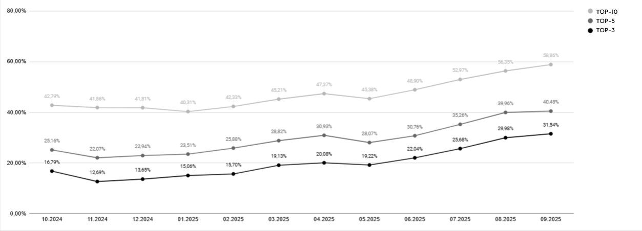 As a result of earlier efforts, year-over-year traffic growth reached 44%. Since both content and the backlink profile were already delivering stable results, we shifted our focus to improving the indexation of specific pages and optimizing those at risk of stagnation. We also continued strengthening the high-quality backlink profile.